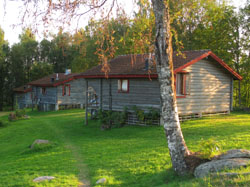 Die Holzhäuser mit DU/WC und Kochnische sind, wie in Schweden üblich, recht rustikal eingerichtet. Zwei Etagenbetten stehen in kleinen Schlafräumen, die mit einem Vorhang vom Wohnraum getrennt sind. Zwei weitere Matratzen befinden sich im Alkoven. Die Häuser können mit maximal 6 Personen belegt werden. Weitere Informationen und Bilder der Hütten finden Sie unter der Rubrik Unterkunft Gammelbyn.